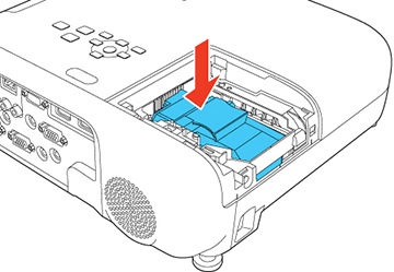 7. Insérez délicatement la nouvelle lampe dans le projecteur. Si la lampe ne s'insère pas aisément, assurez-vous qu'elle est bien orientée.