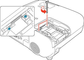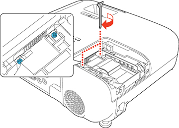 Avertissement : Si la lampe est cassée, le logement de la lampe peut contenir des éclats de verre. Soyez prudent en enlevant le verre cassé afin d'éviter des blessures. Si le projecteur est installé au plafond, placez-vous à côté du couvercle de la lampe et non pas sous ce dernier : des morceaux de verre pourraient tomber dans vos yeux ou votre bouche lorsque vous ouvrez le couvercle de la lampe.