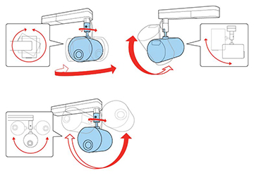 Vous pouvez faire pivoter l'unité de projection de 360 degrés à l'horizontale et de 90 degrés à la verticale. Vous pouvez aussi incliner l'image à 90 degrés dans chaque direction.