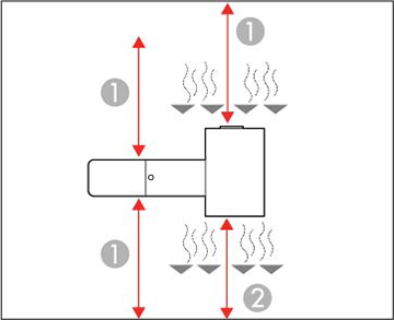 1 11,8 po (30 cm) 2 7,8 po (20 cm) Si vous installez plusieurs projecteurs côte à côte, assurez-vous de laisser au moins 20 po (50 cm) d'espace entre chacun d'eux. De plus, assurez-vous que l'air chaud provenant d'une sortie d'air n'entre pas dans l'évent d'entrée d'air d'un autre projecteur.