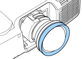 Remarque: Si vous avez installé l'objectif à courte focale ELPLU02 optionnel et qu'un message vous invite à régler manuellement la distorsion de l'image, faites tourner manuellement la bague de distorsion dans le sens contraire des aiguilles d'une montre. Effectuez la mise au point et faites ensuite tourner la bague de distorsion de nouveau afin de corriger la distorsion de l'image.