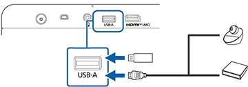 - Il n'est pas garanti que le port USB-A fasse fonctionner tous les dispositifs qui prennent en charge les connexions USB.